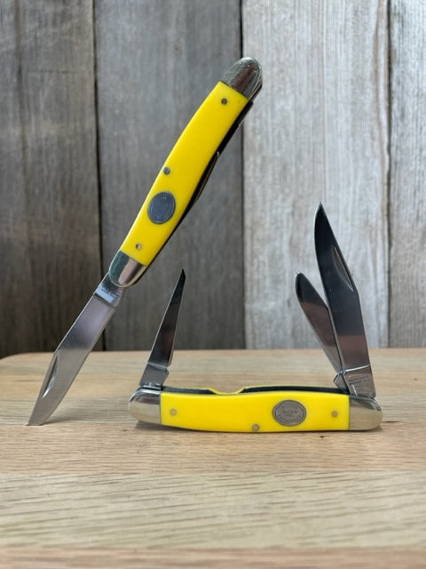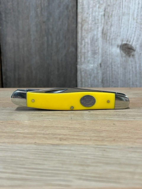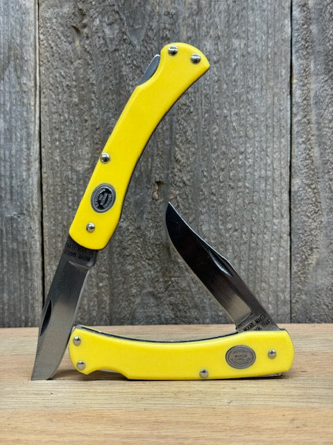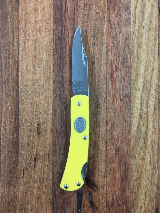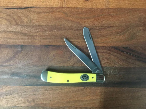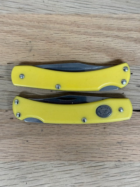 Only 1 left!YELLOW DELRIN HANDLE TRAPPER, 3 7/8" ENGRAVING AVAILABLE MADE IN USA