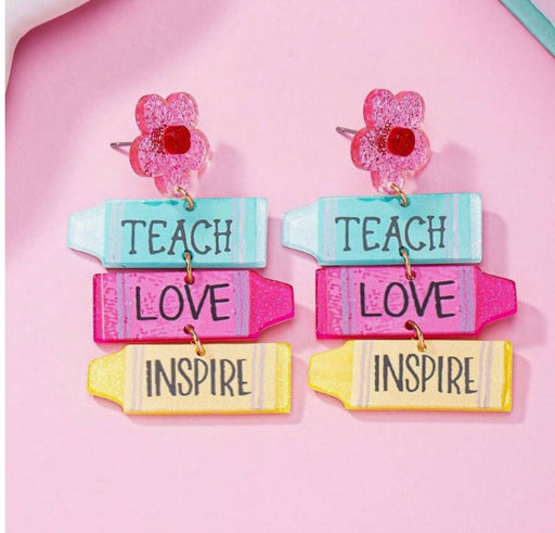 Out of stockTeacher's Style Floral Colored Pencil Earrings With Silver Foil Acrylic For Women's Daily Wear
