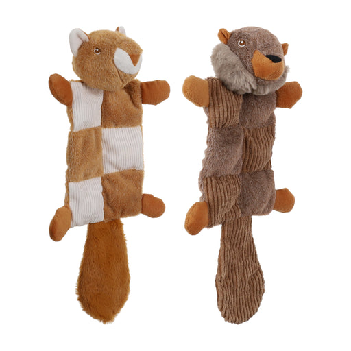 5+ in stockPlush Dog Toy Squirrels with squeaker and crinkle. Helps stimulate exercise for your pet. Measures 15.5" long