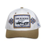 Only 4 left!RopeSmart Blue Cow Puncher Patch White and Khaki Trucker Cap RopeSmart Blue Cow Puncher Patch White and Khaki Trucker Cap. 6 Panel. Curved Visor.