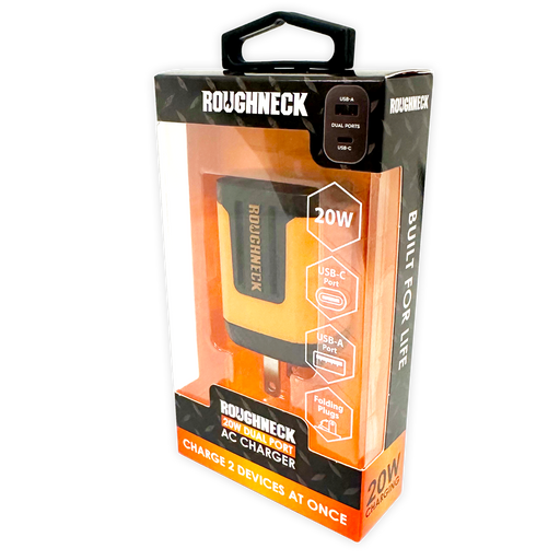 Only 1 left!This Roughneck AC charger can charge two of your devices at the same time with the 20W dual port charger. Easily fits in your pocket or bag with f...
