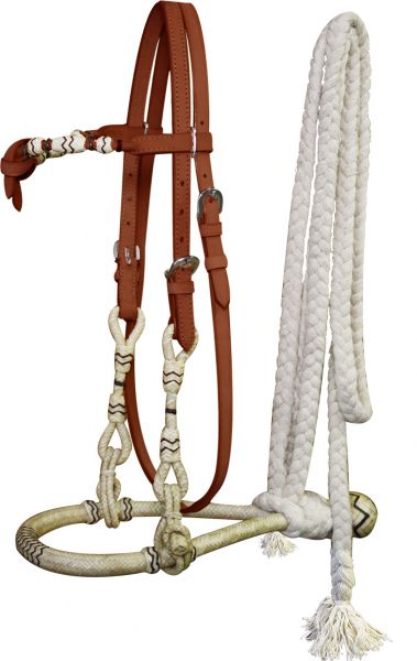 Showman Fine quality rawhide core show bosal with a cotton mecate rein - MEDIUM BROWN