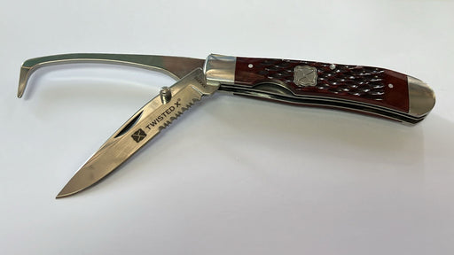 TWISTED X FOLDING KNIVES- 4 1/4"" RED BONE STOCKMAN