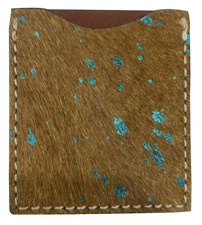 Brown and Teal Acid Wash Hair on Cowhide Stick On Cell Phone Card Wallet
