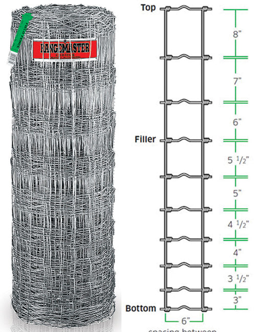 Out of stockHinge Joint Knot: High Tensile Class 3 Galv Field Fence. Top and Bottom wire 10 gauge. Filler wire 12-1/2 gauge.