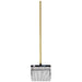Made of space age molded, flexible plastic, many times more durable than a metal fork. Lightweight. 20 plastic tines, with the two outside molded together for added strength. 16" wide. Available with aluminum or wood handles.