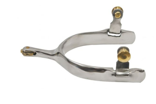 Out of stockShowman ® stainless steel spur with leaf overlay. This stainless steel spur features a downward curved shank, 3/4" band, 3" boot width.