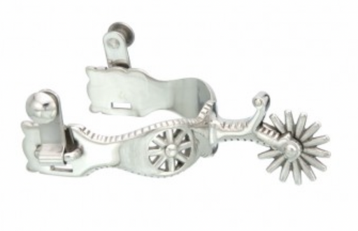 Out of stockThese flashy stainless steel show spurs feature handsomely etched edges and a cutout rowel accent. The unique shaped band comes complete with free-...