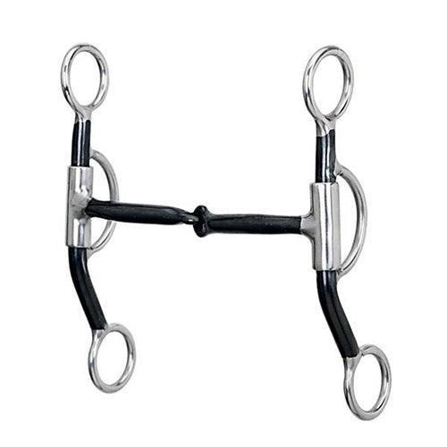 Only 1 left!This stainless steel/black steel training bit features a 5" slightly curved snaffle mouth with copper inlay and 6-1/2" loose cheeks.