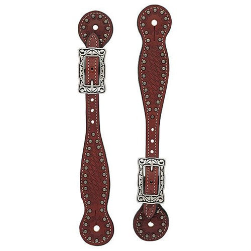 Basketweave Bridle Leather Spur Straps, Thin, Chestnut