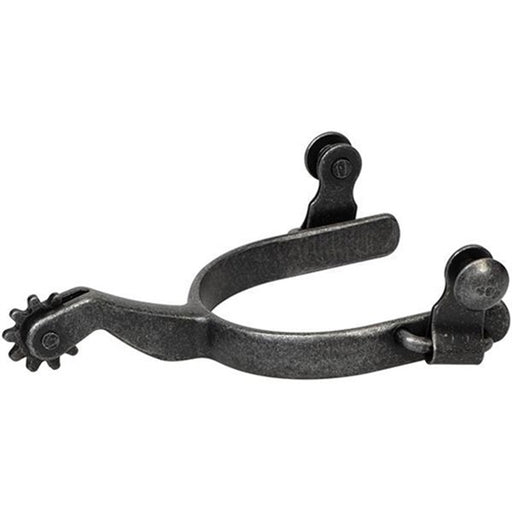 Only 1 left!Ladies’ roping spur with an on-trend buffed black finish and twisted band. Features 1-3/4″ shank, 1/2″ band and 1 point rowel. Ladies’ size. Buffe...