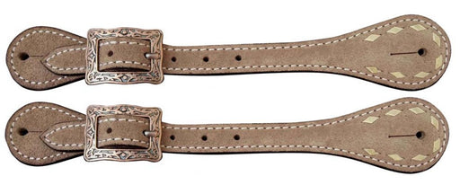 Showman Men's Roughout Leather spur straps with natural buckstitch trim