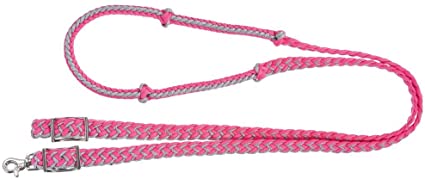 Tough1® Metallic Cord Knotted Roping Reins-PINK/SILVER