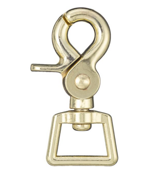 Only 1 left!Versatile brass-plated steel snap with a square swivel eye. A very popular snap for reins for quicker bit changes.