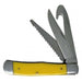 Wild Turkey pocket knife with hoof pick tool and saw blade. A handy tool for your trail pack and small enough for your pocket! Measures 7.25" when in the open position. 3" tools. With a polyester yellow handle, this knife makes a great gift item for any horseman!