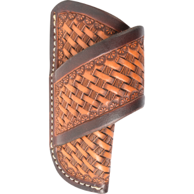 Only 2 left!From the ranch to the rodeo arena, any cowboy knows they have to keep their knife handy. Natural skirting leather with basketstamp tooling gives th...