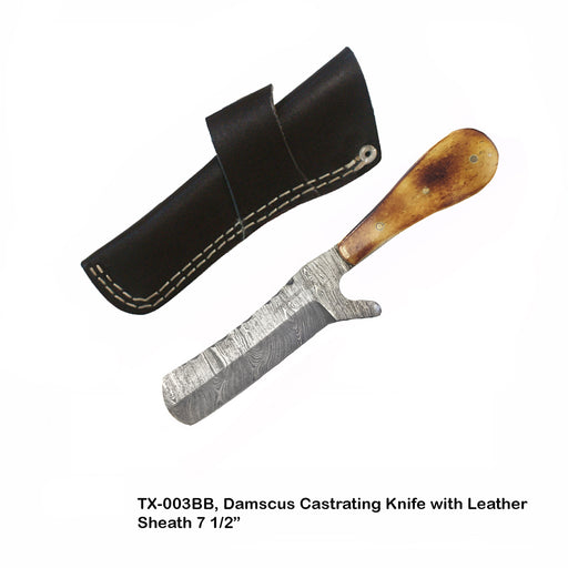 Only 2 left!KNIFE, DAMASCUS CASTRATION BURNTBONE GRIP
