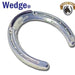 The WEDGE HIND has elevated heels that are raised by 1.5 degree and helps to support run down heels or other reasons that the farrier deems necessary. The toe grab is raised .205” (5.2mm) above the surface of the shoe. All of our toe grabs are made of heat treated tool steel for durability and long wear.