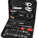- ZIPPERED CASE: Nylon case closes securely and is tough enough to take to any job: Includes a bit driver and bits, sockets and accessories, adjustable wrench, pliers, compact flashlight, tire gauge, 12-volt tester and more in a convenient and compact nylon zippered case.