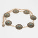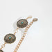This chain belt brings a luxurious detailed ornate disc concho style.