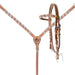 Showman Argentina Leather browband headstall and breast collar set with hair on cowhide lacing